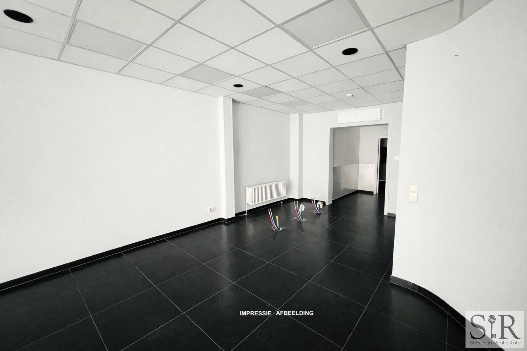 Achteraan bevindt zich een afzonderlijk toilet en een aparte ruimte die perfect kan dienen als extra kantoor, archiefruimte of berging, met mogelijkheid tot het plaatsen van een kitchenette.